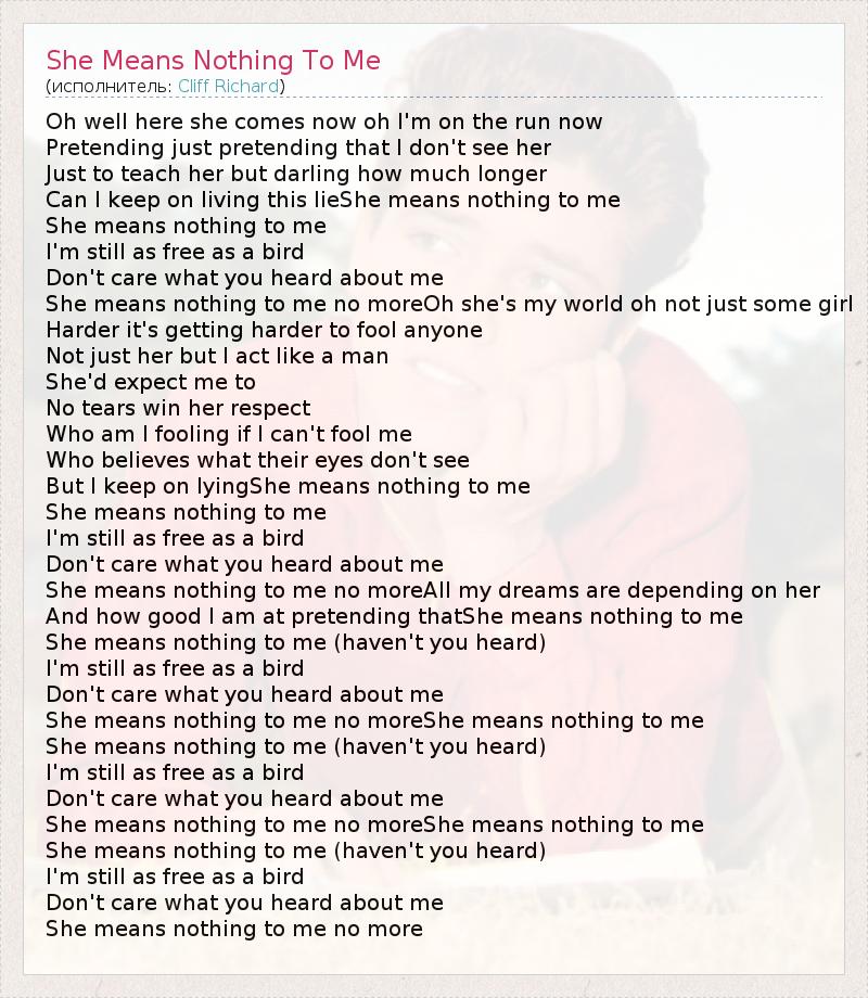 А как ты думаешь, о чем песня "She Means Nothing To Me" ?