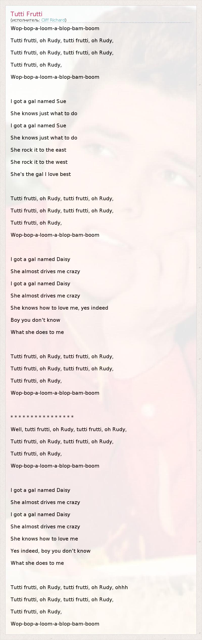 А как ты думаешь, о чем песня "Tutti Frutti" ?
