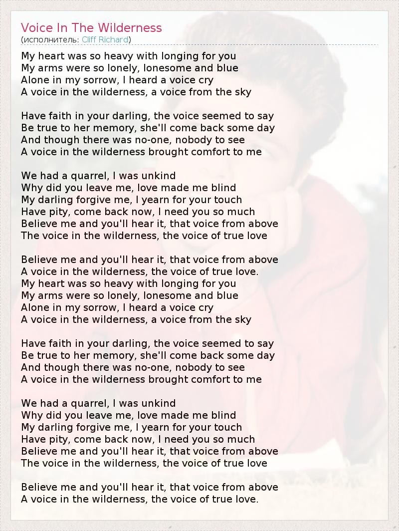 А как ты думаешь, о чем песня "Voice In The Wilderness" ?