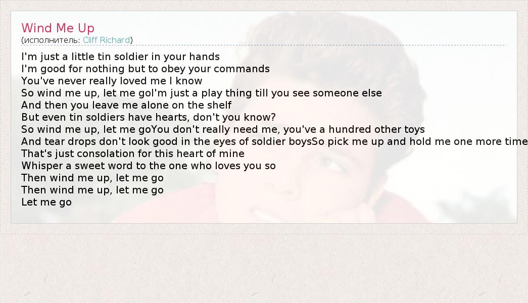 А как ты думаешь, о чем песня "Wind Me Up" ?