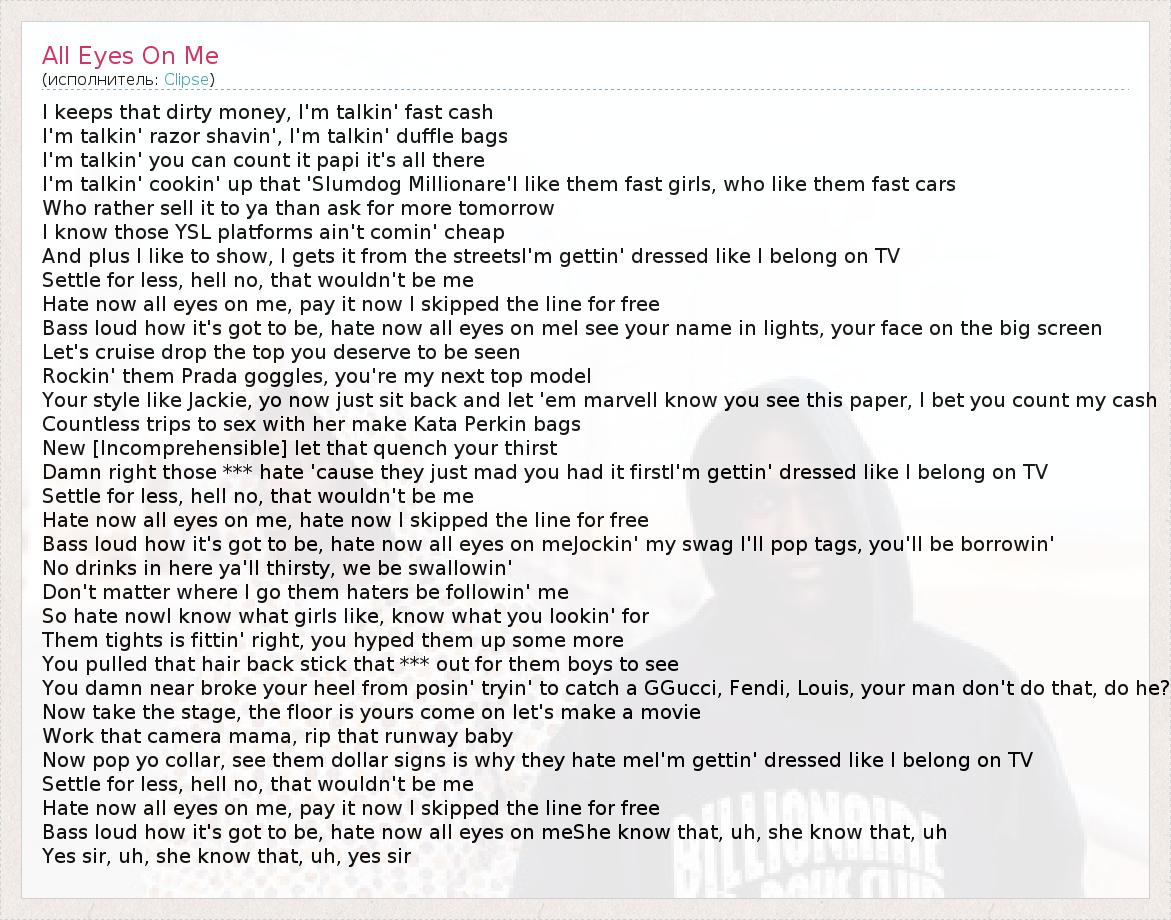 А как ты думаешь, о чем песня "All Eyes On Me" ?