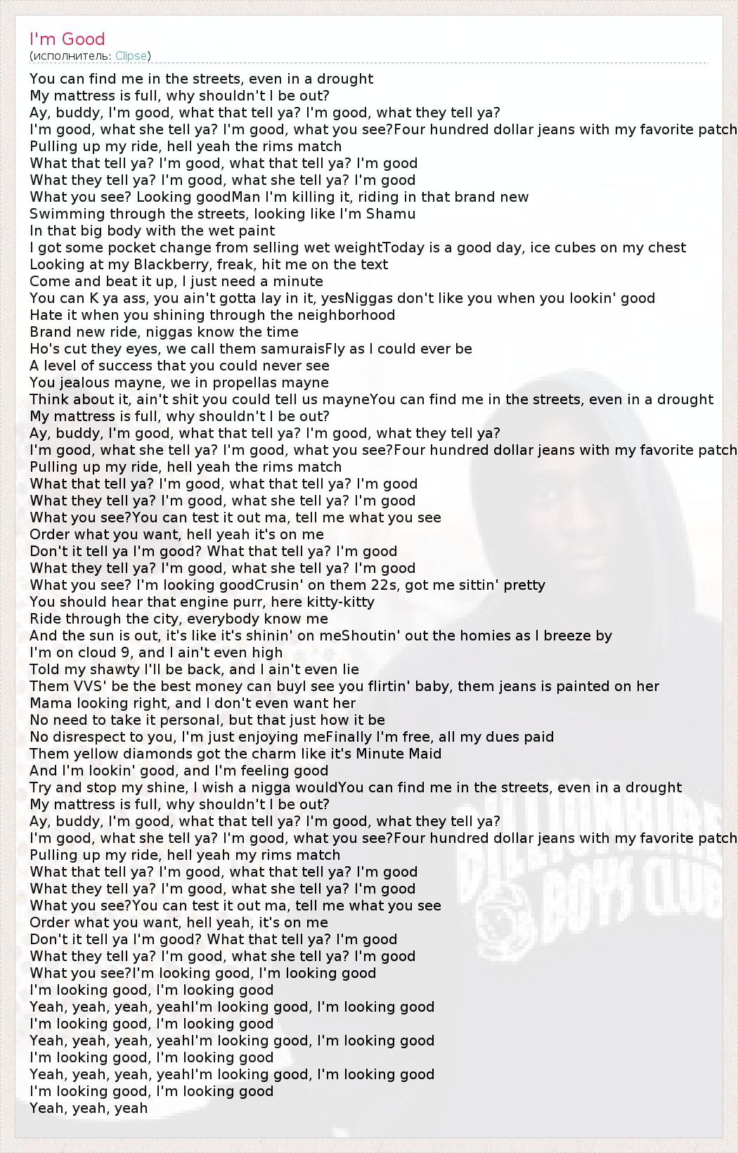 Yeah, yeah, yeah, yeahI'm looking good, I'm looking good
