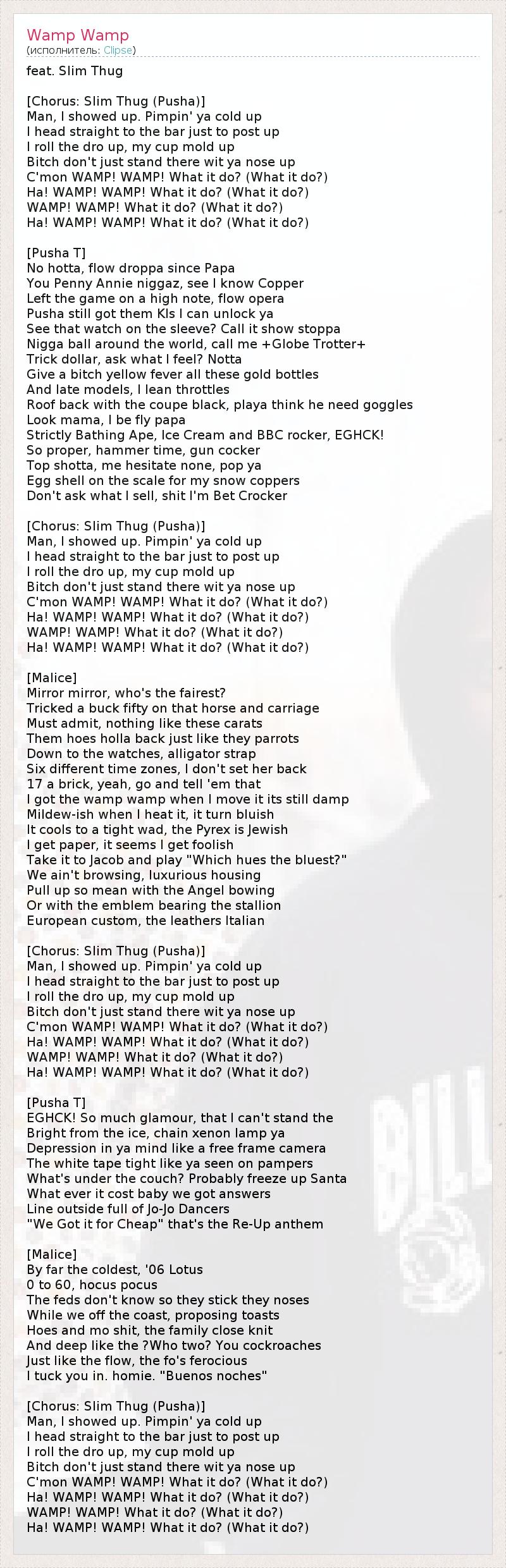 А как ты думаешь, о чем песня "Wamp Wamp" ?