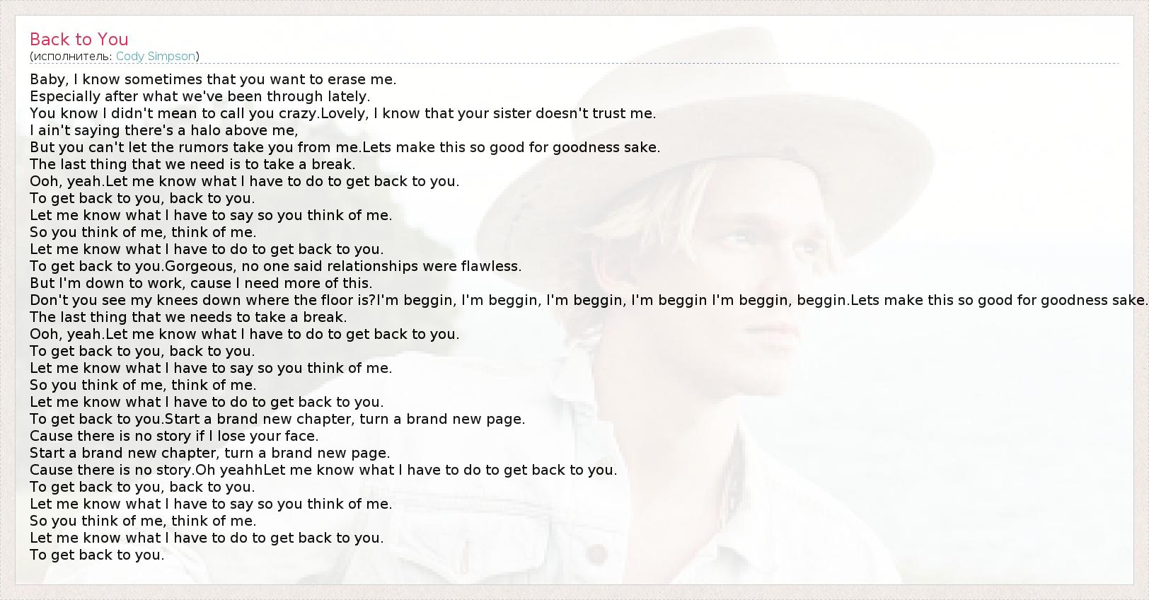 А как ты думаешь, о чем песня "Back to You" ?