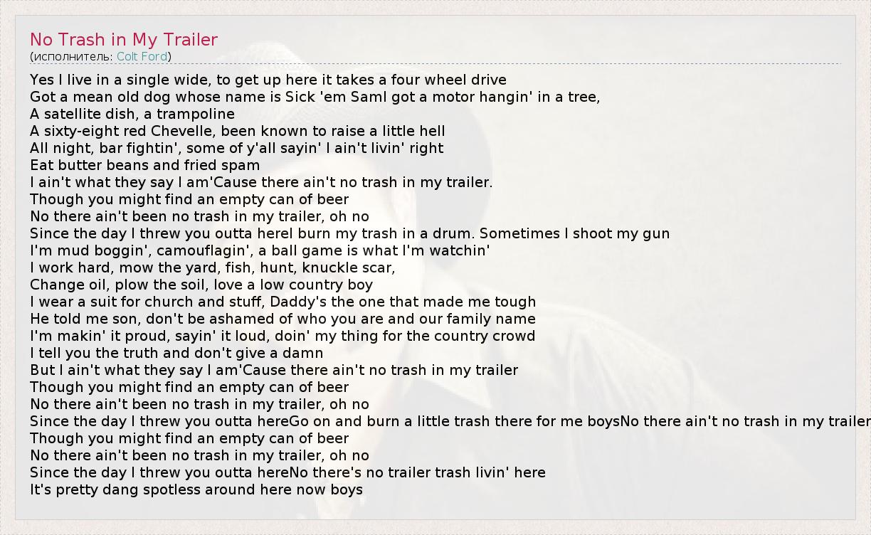 ГлавнаяИсполнителиColt FordNo Trash in My Trailer