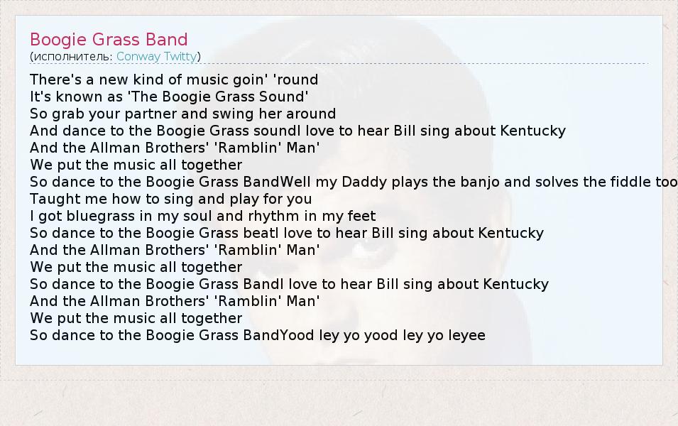 А как ты думаешь, о чем песня "Boogie Grass Band" ?
