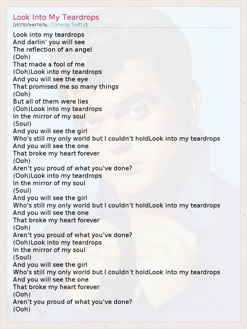 А как ты думаешь, о чем песня "Look Into My Teardrops" ?