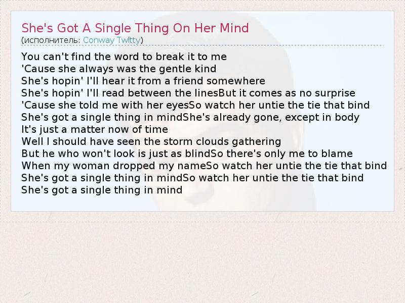 А как ты думаешь, о чем песня "She's Got A Single Thing On Her Mind" ?