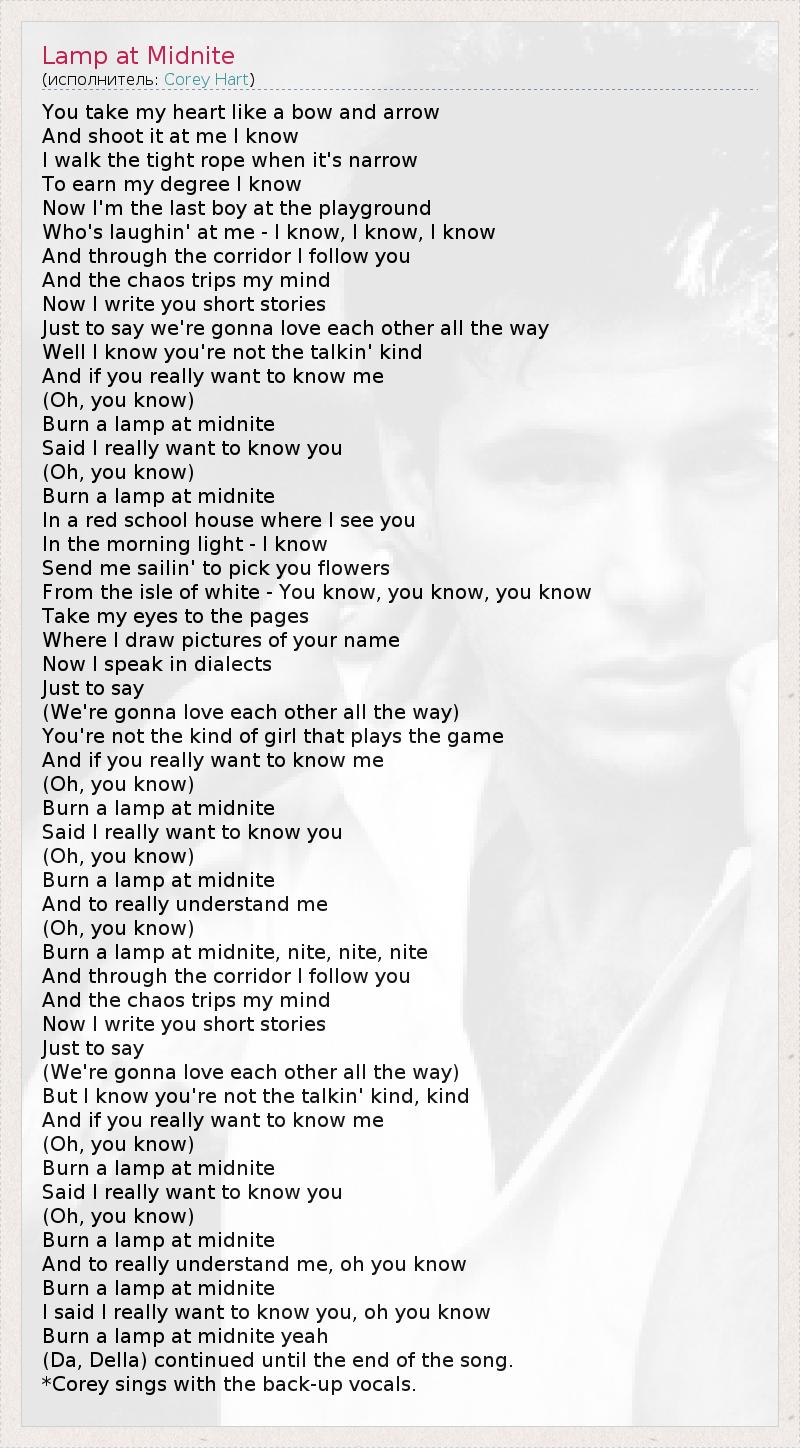 А как ты думаешь, о чем песня "Lamp at Midnite" ?