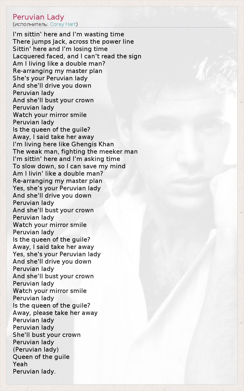 А как ты думаешь, о чем песня "Peruvian Lady" ?