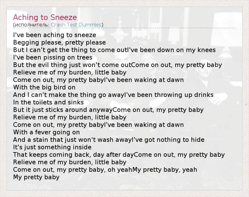 А как ты думаешь, о чем песня "Aching to Sneeze" ?