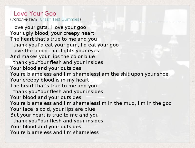 А как ты думаешь, о чем песня "I Love Your Goo" ?