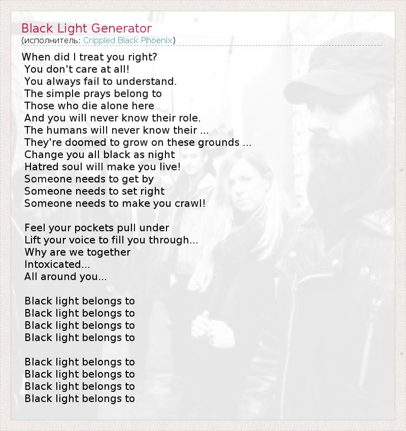 А как ты думаешь, о чем песня "Black Light Generator" ?