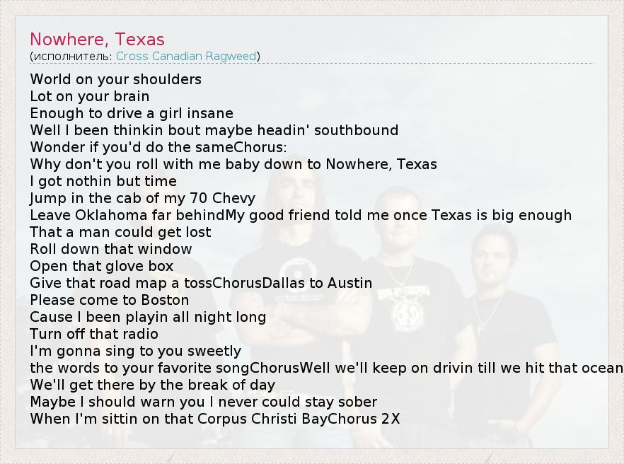А как ты думаешь, о чем песня "Nowhere, Texas" ?