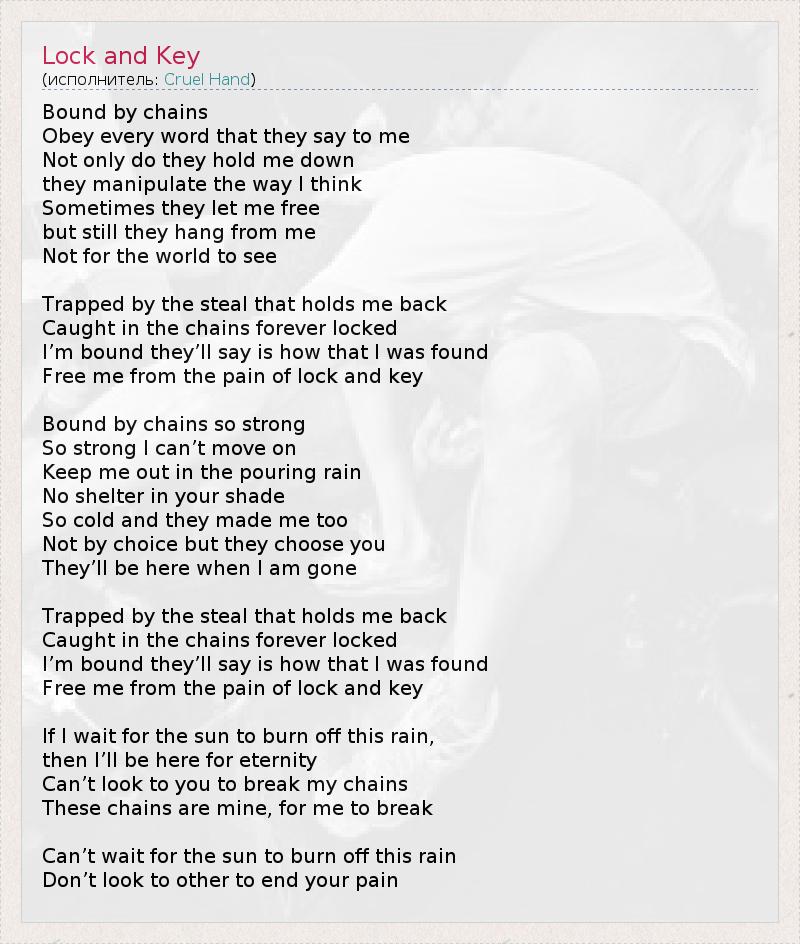 А как ты думаешь, о чем песня "Lock and Key" ?