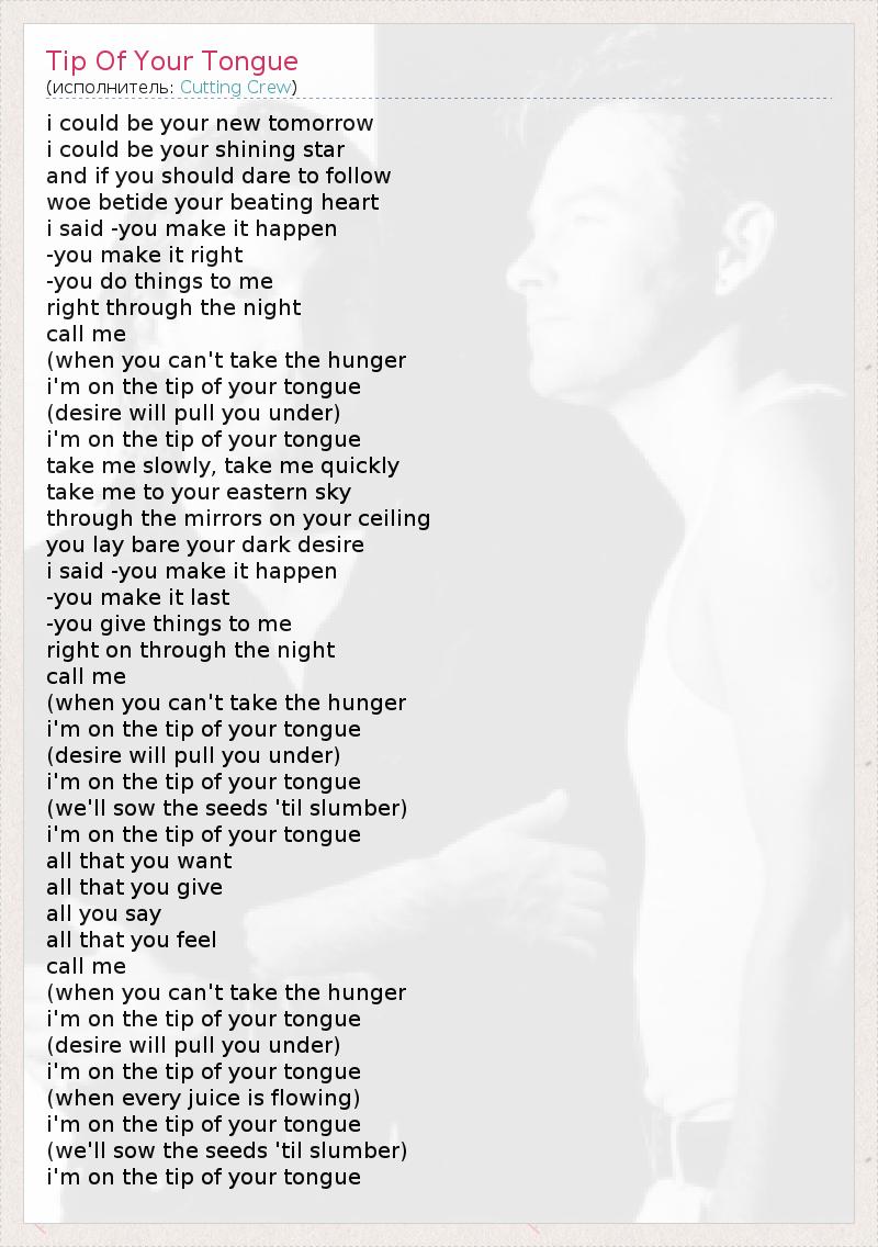 А как ты думаешь, о чем песня "Tip Of Your Tongue" ?
