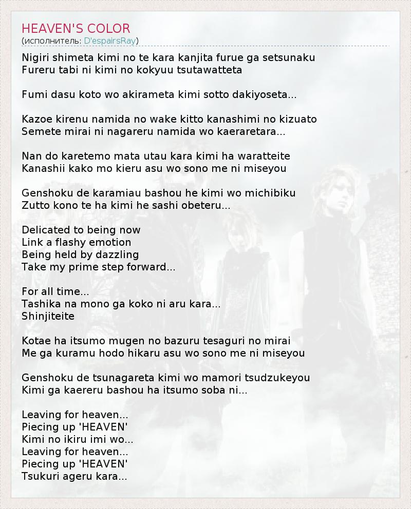 А как ты думаешь, о чем песня "HEAVEN'S COLOR" ?