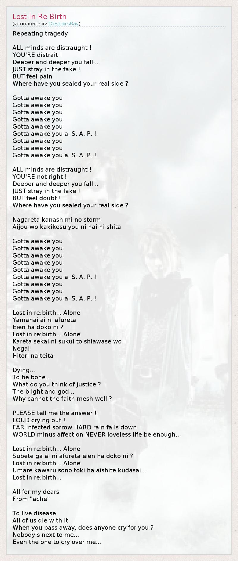 А как ты думаешь, о чем песня "Lost In Re Birth" ?