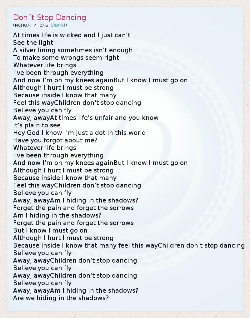 А как ты думаешь, о чем песня "Don´t Stop Dancing" ?