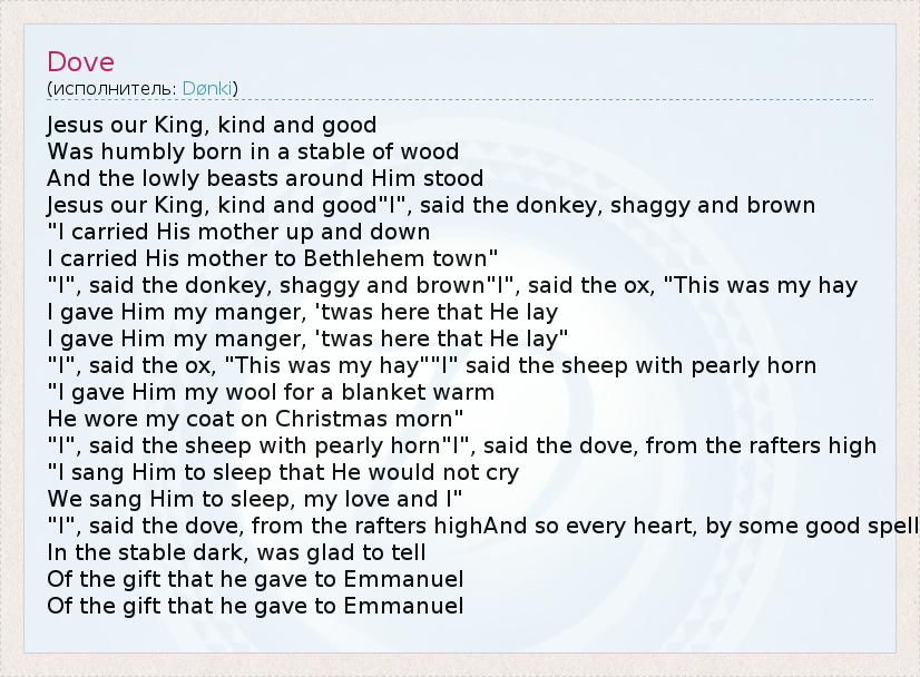 Jesus our King, kind and good"I", said the donkey, shaggy and brown