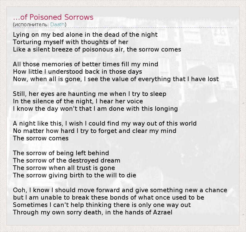 А как ты думаешь, о чем песня "...of Poisoned Sorrows" ?