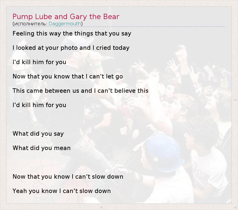 А как ты думаешь, о чем песня "Pump Lube and Gary the Bear" ?