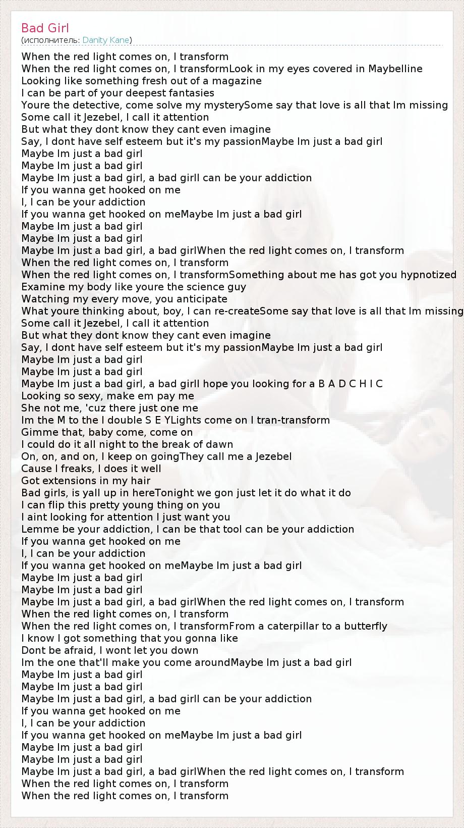 А как ты думаешь, о чем песня "Bad Girl" ?