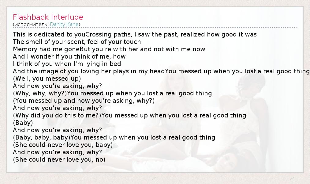 А как ты думаешь, о чем песня "Flashback Interlude" ?