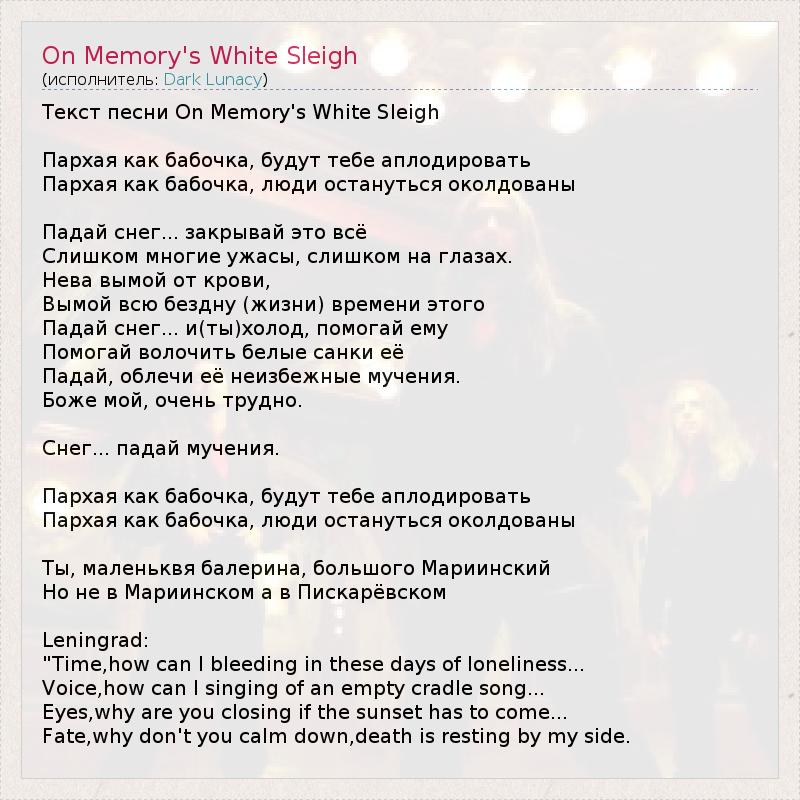 А как ты думаешь, о чем песня "On Memory's White Sleigh" ?