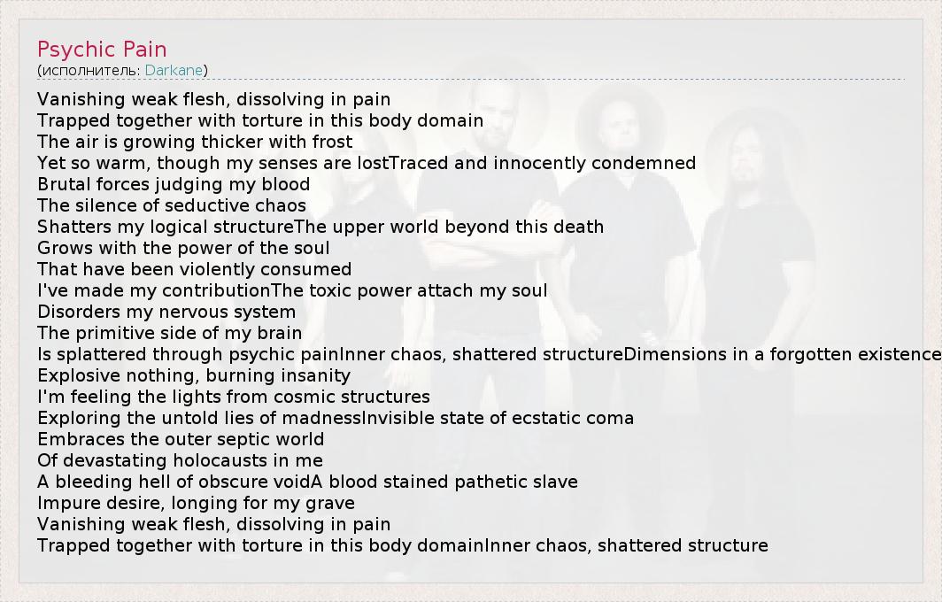 А как ты думаешь, о чем песня "Psychic Pain" ?