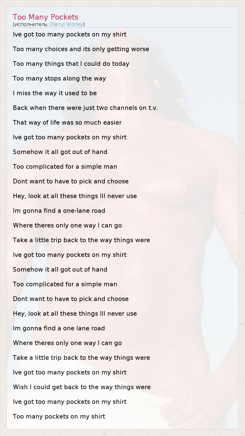 А как ты думаешь, о чем песня "Too Many Pockets" ?