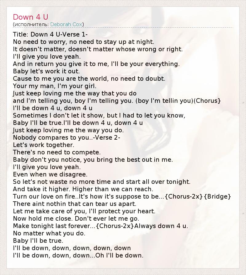 А как ты думаешь, о чем песня "Down 4 U" ?