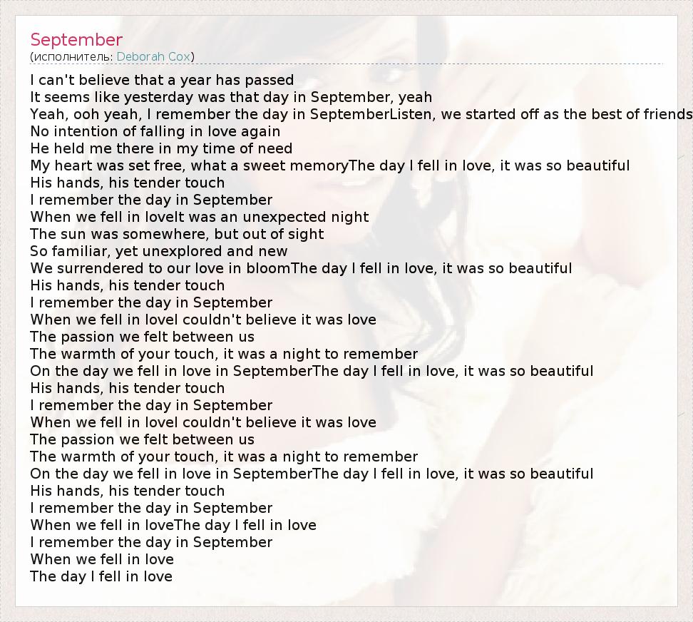 Yeah, ooh yeah, I remember the day in SeptemberListen, we started off as the best of friends