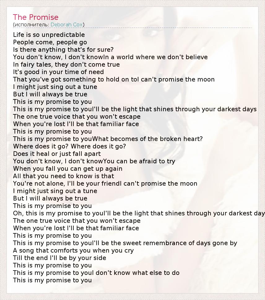 Oh, this is my promise to youI'll be the light that shines through your darkest day