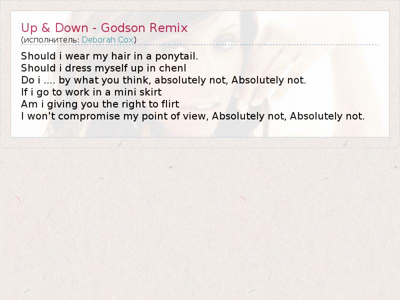 ГлавнаяИсполнителиDeborah CoxUp & Down - Godson Remix
