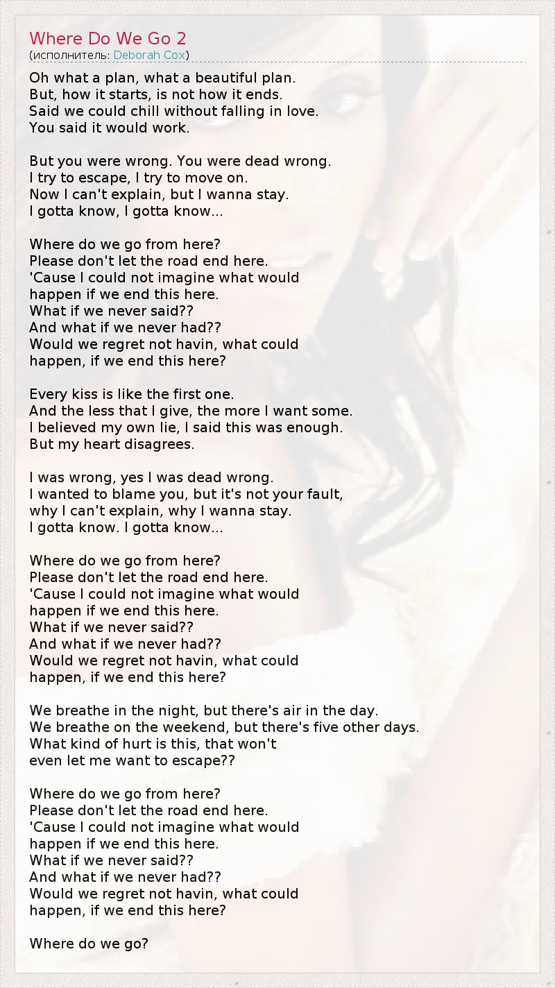 А как ты думаешь, о чем песня "Where Do We Go 2" ?