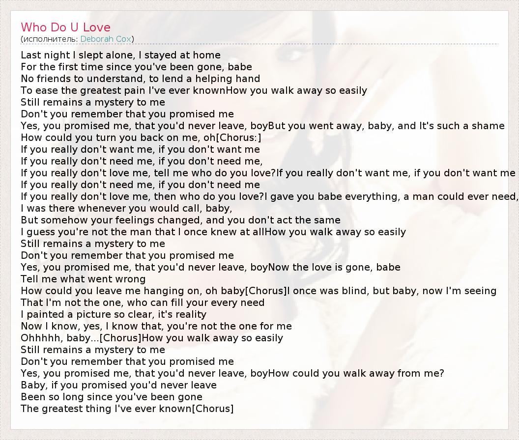 А как ты думаешь, о чем песня "Who Do U Love" ?