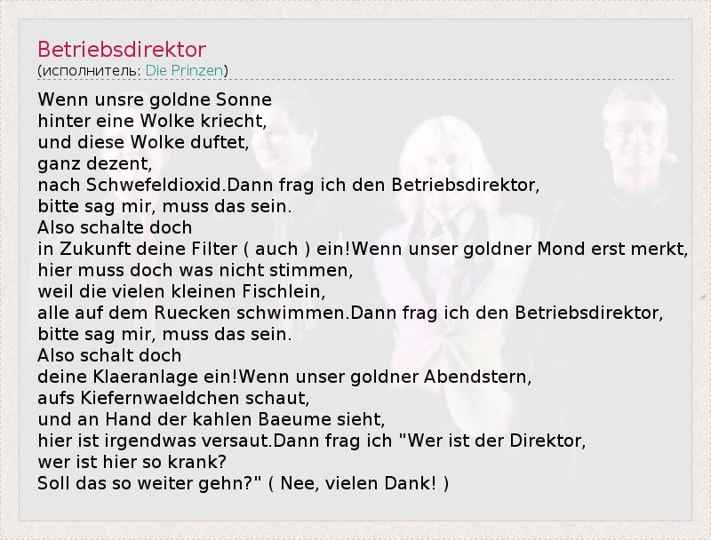 А как ты думаешь, о чем песня "Betriebsdirektor" ?