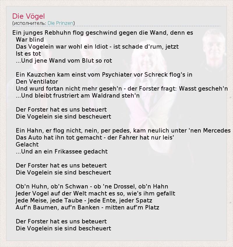 А как ты думаешь, о чем песня "Die Vögel" ?