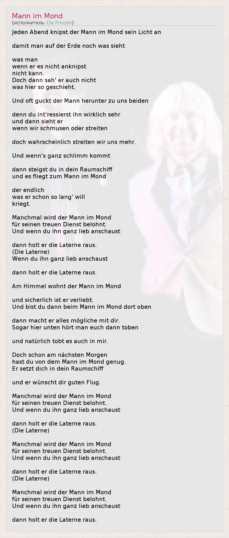 А как ты думаешь, о чем песня "Mann im Mond" ?