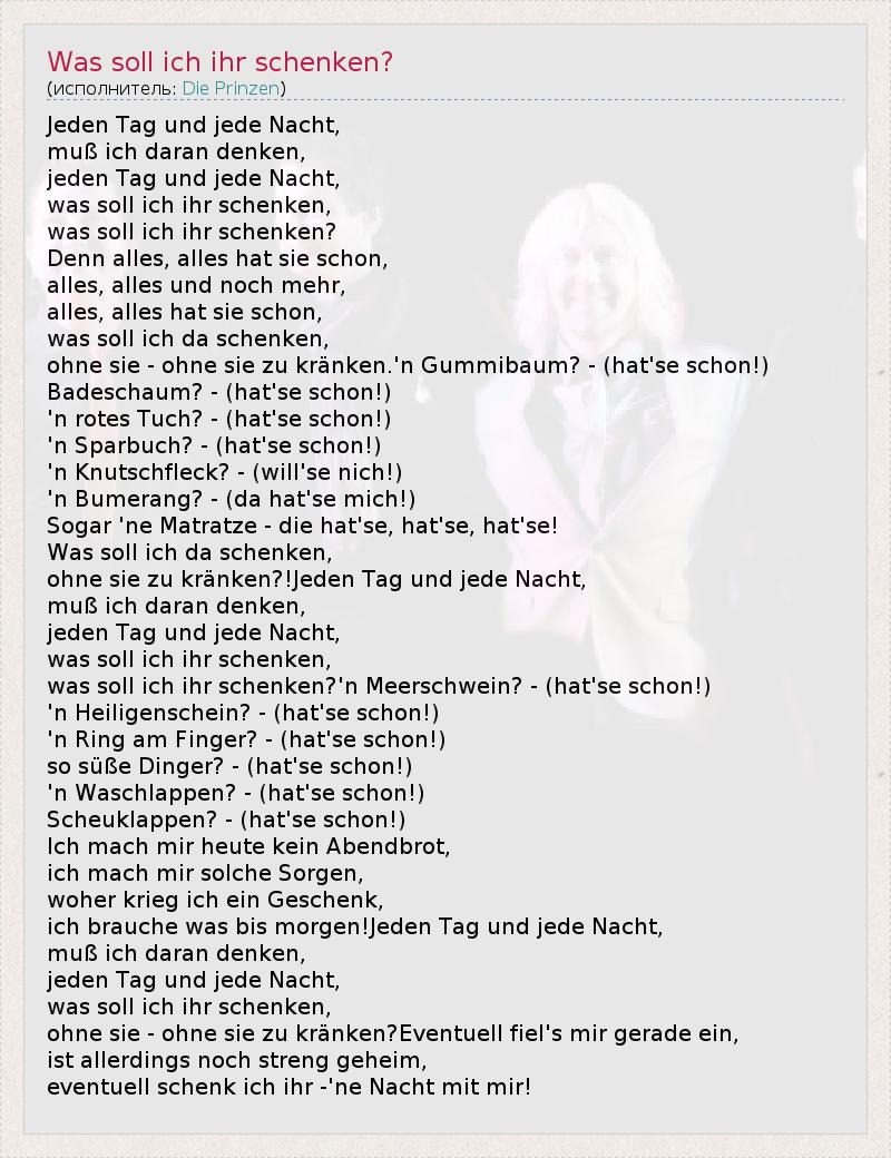 А как ты думаешь, о чем песня "Was soll ich ihr schenken?" ?
