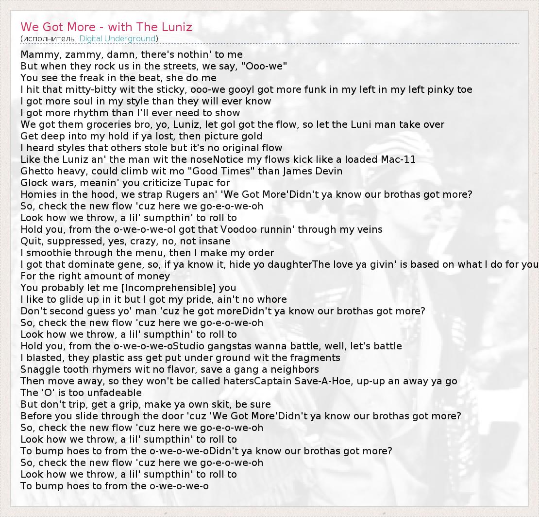 ГлавнаяИсполнителиDigital UndergroundWe Got More - with The Luniz