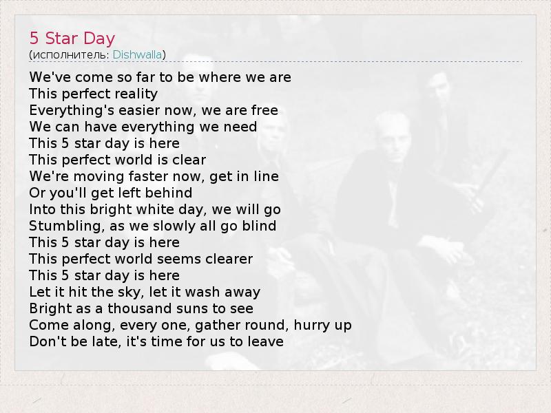 А как ты думаешь, о чем песня "5 Star Day" ?