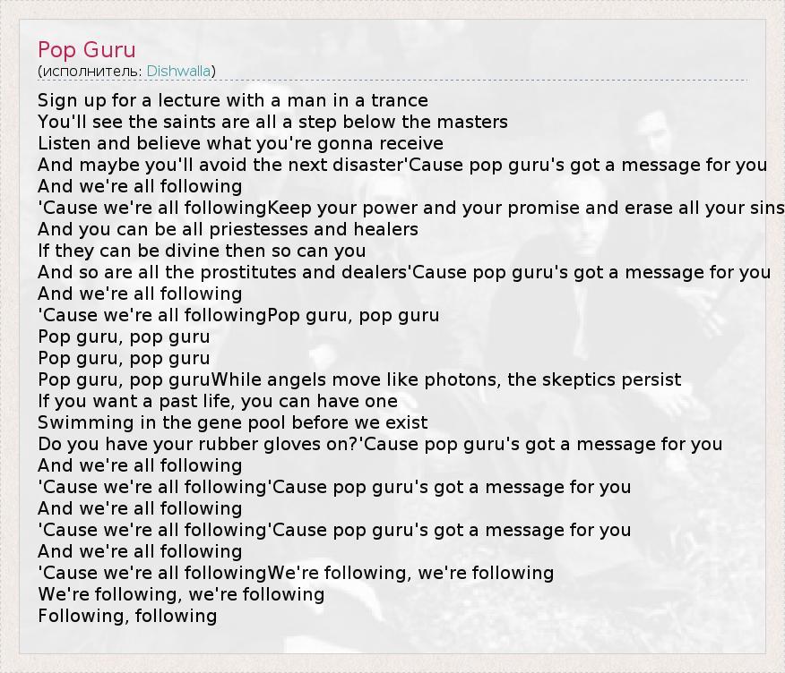 А как ты думаешь, о чем песня "Pop Guru" ?