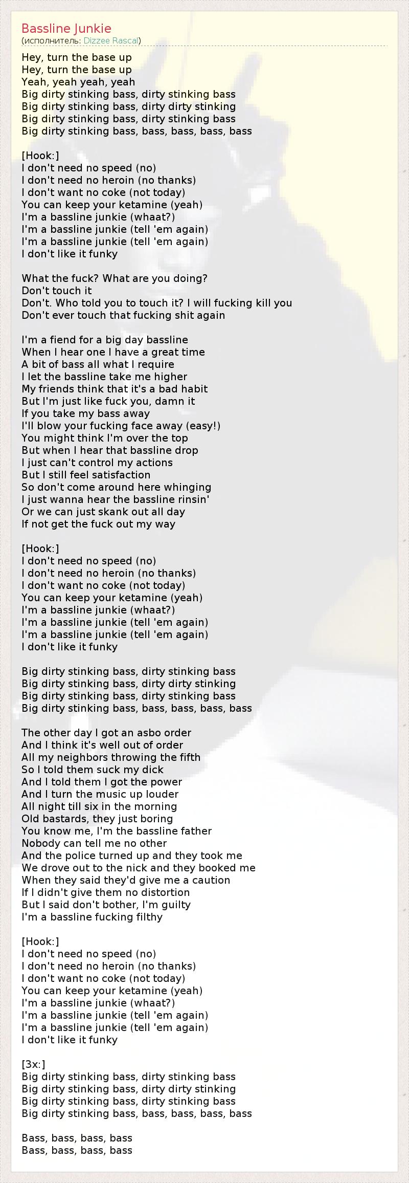 А как ты думаешь, о чем песня "Bassline Junkie" ?