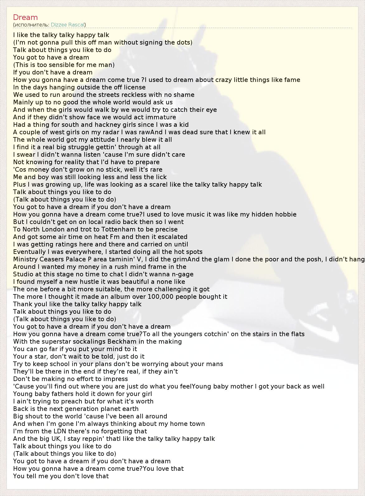 А как ты думаешь, о чем песня "Dream" ?