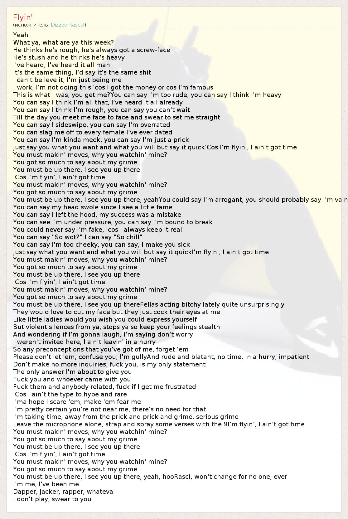 Just say you what you want and what you will but say it quick'Cos I'm flyin', I ain't got time