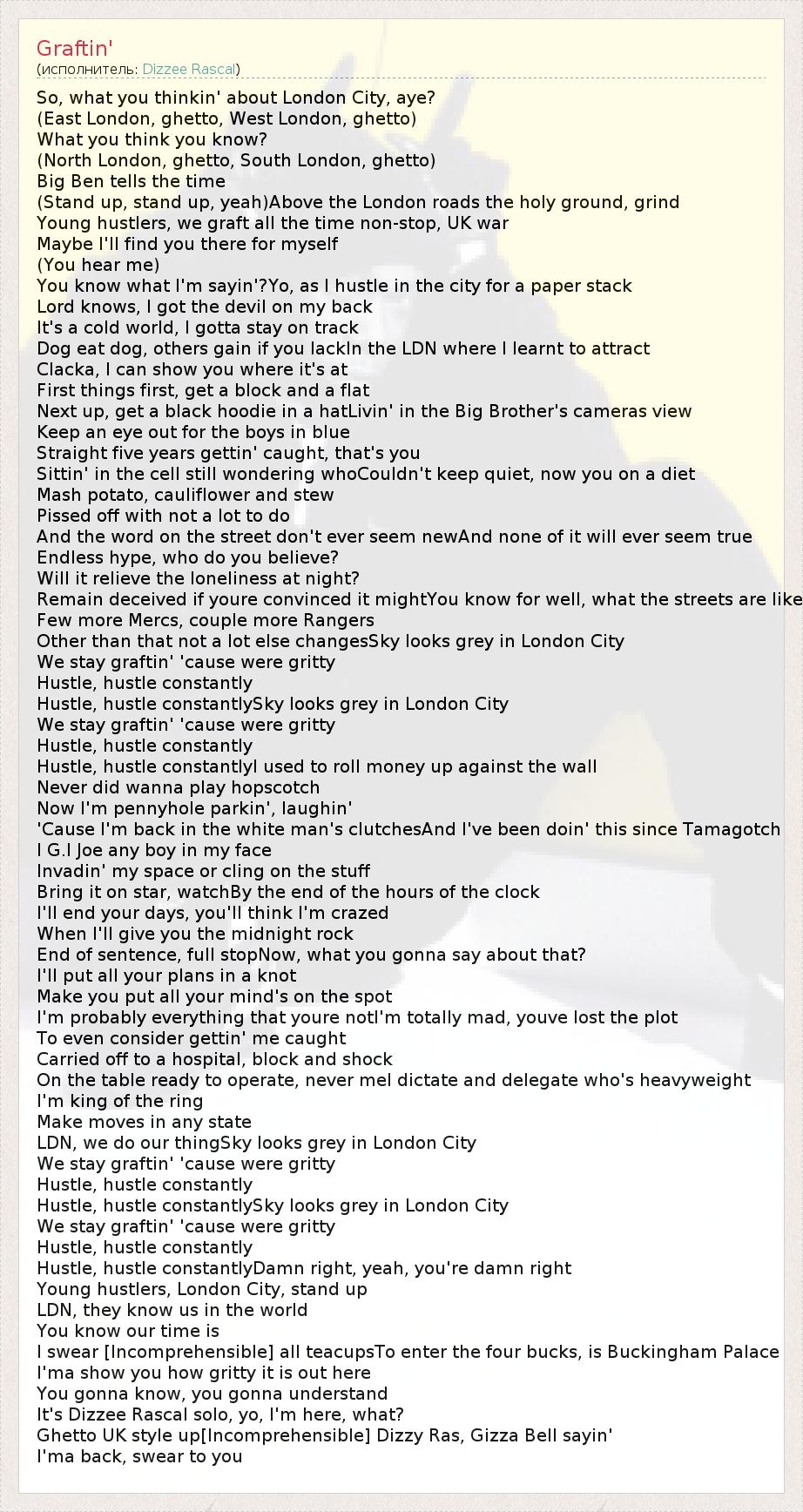 Это интересно:Когда-то Dizzee знали под именем Dylan Mills. Безотцовщина и малолетний преступник, из той категории, что принято называть "трудными детьми". Помнится, в моей нормальной советской школе подобных не вписывающихся в рамки было принято списывать в специальные классы коррекции – дабы не разлагали личным примером неиспорченных деток. Как правило, подобные отроки ясно представляют, куда их занесет... продолжение
