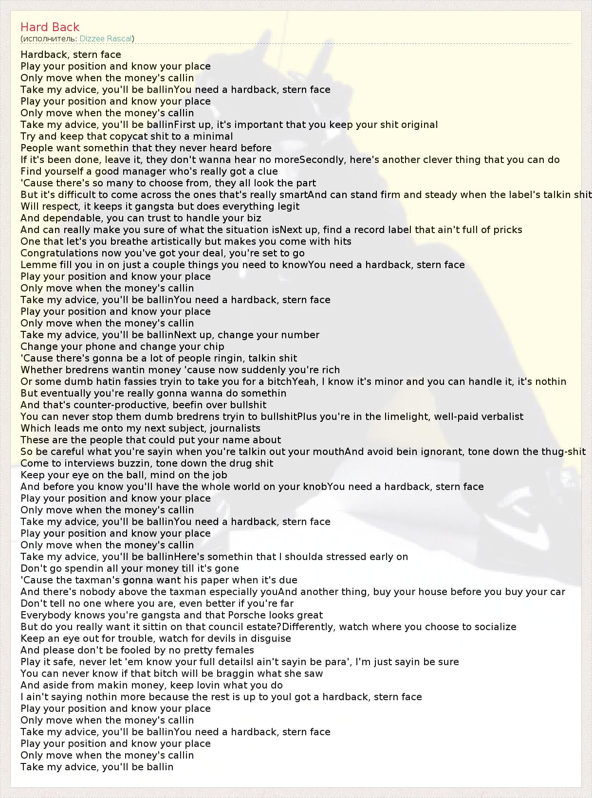 I ain't saying nothin more because the rest is up to youI got a hardback, stern face