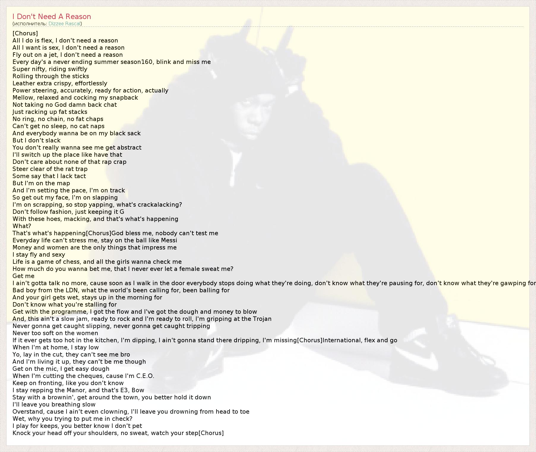 А как ты думаешь, о чем песня "I Don't Need A Reason" ?